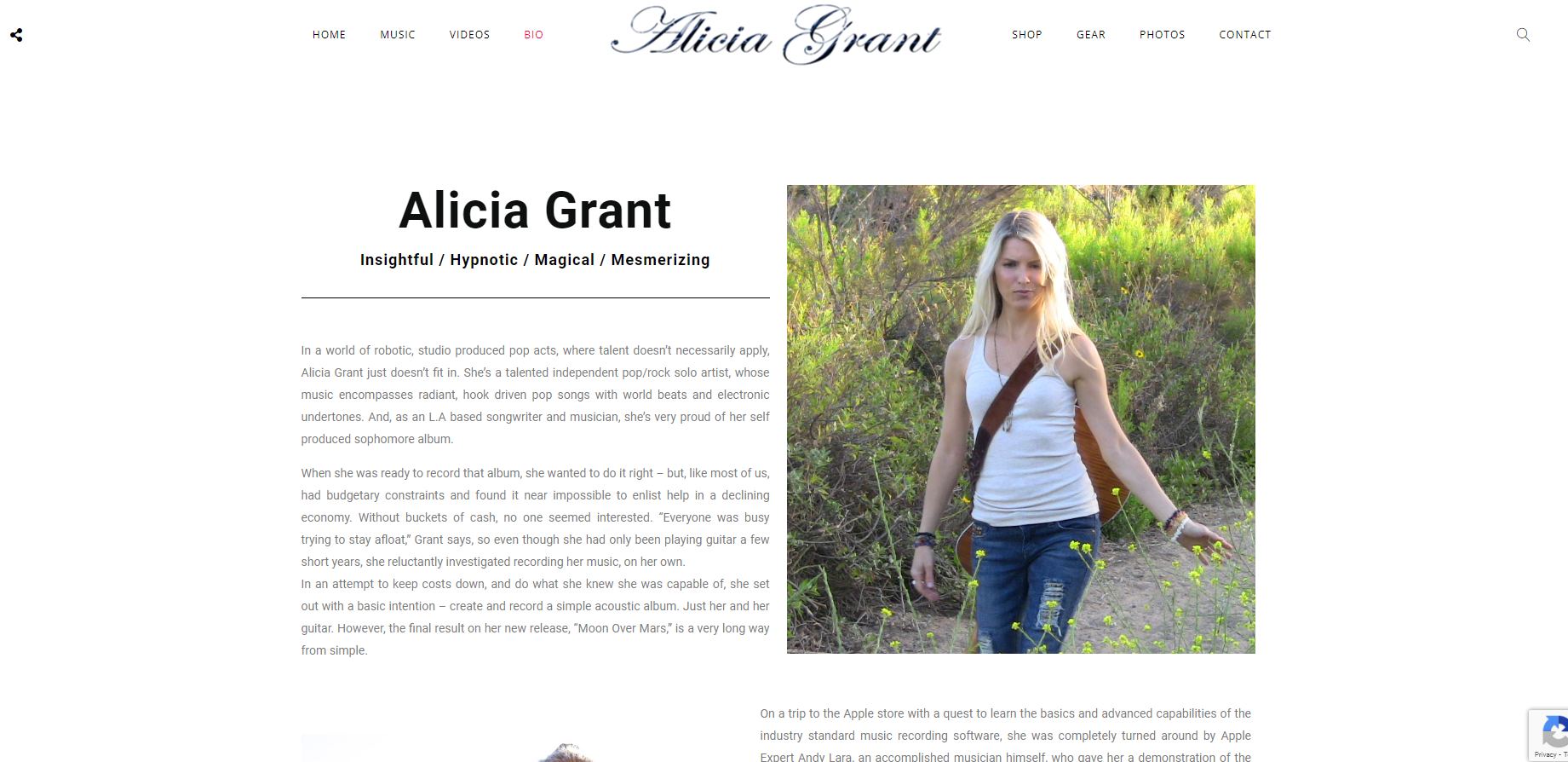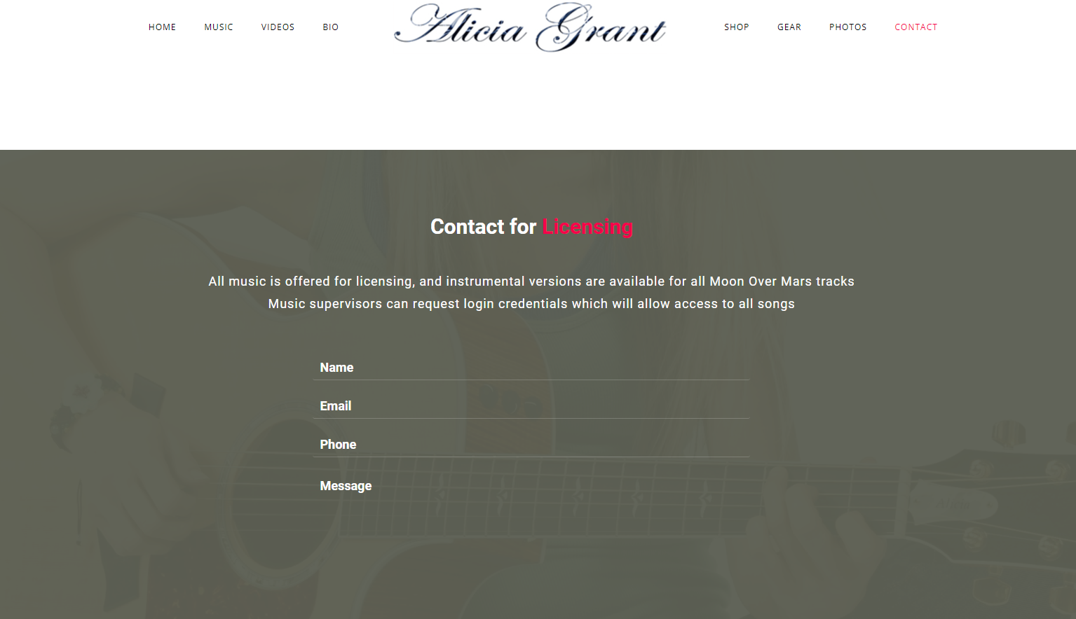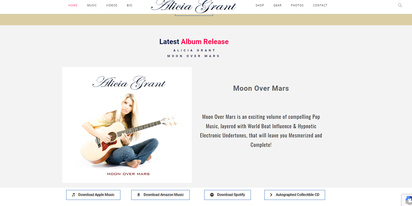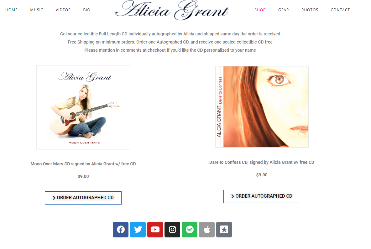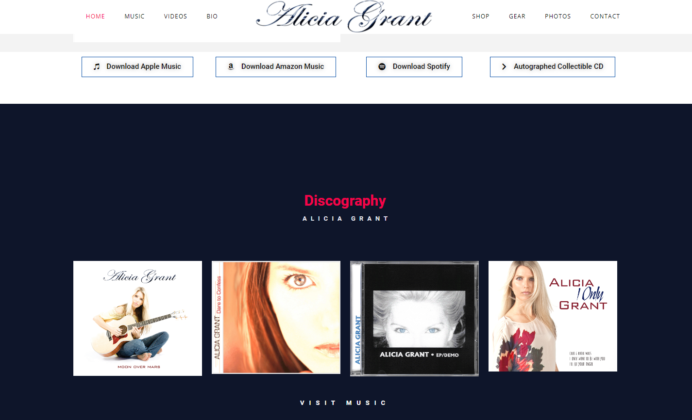 Website was built to display Alicia Grant’s music which is available for licensing. Viewers can listen and download music from Apple Music, Amazon Music, Spotify and purchase an Autographed Collectible CD.